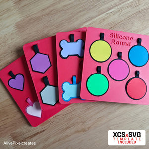 Complete Silicone Tag Set, Dog Bone, Heart Shape, Hexagonal Shape, Round 35mm