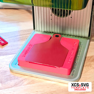 Our universal ear tag fixture will help you with that task, and using the provided  XCS or SVG template you will make the process fast and easy.
